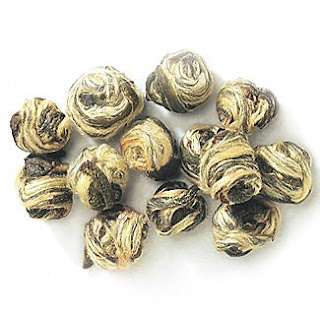 Top Grade, Limited Production Green Tea. Tight downy balls retain the flavor of spring. Leaves are hand-rolled and infused with scent of sweet jasmine flowers. A lightly fermented fresh, bright cup with a clean finish.