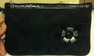 23) Signature Floral Applique Large Flat Wristlet (Black) - SGD 105