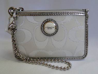 12) Coach Signature Metallic Medium Pleated Wristlet – SGD 90.00