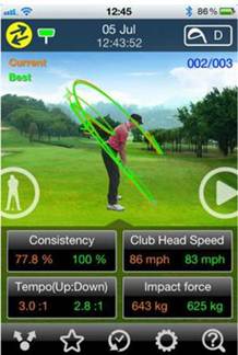 You can instantly review the swing arc animation playback along with key swing parameters including Club Head Speed, Face Angle, Tempo, Swing Path, Impact Force, Consistency on the intuitive mobile app. You can also compare each swing with your best one or coaches’ to make adjustments and achieve higher swing consistency.