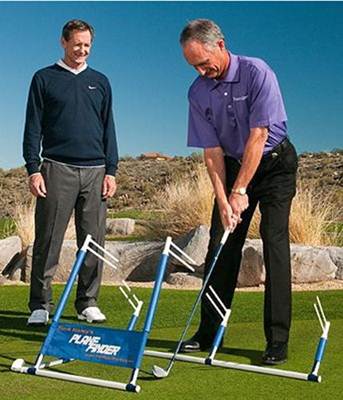 The Hank Haney PlaneFinder is for golfers who want to improve their swing. The concept of swinging the golf club on the proper plane was first articulated by Ben Hogan in his classic 1957 instructional book, "Five Lessons: The Modern Fundamentals of Golf." Years later, legendary teacher Hank Haney has made swinging on plane the cornerstone of his work with Tour players and high handicappers alike. And now, along with inventor Rusty Pies, Haney has created the PlaneFinder, a unique and innovative device that provides immediate feedback if the club deviates from the proper plane on both the backswing and downswing.