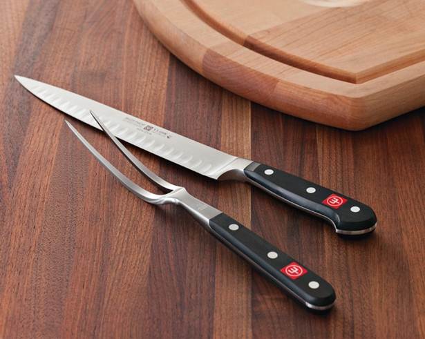 Made in Germany, this set is perfect for carving the holiday bird or any meat or poultry. The knife's curved high-carbon-steel blade helps you follow the contours of meat on the bone. The sturdy carving fork holds meat securely in place.
